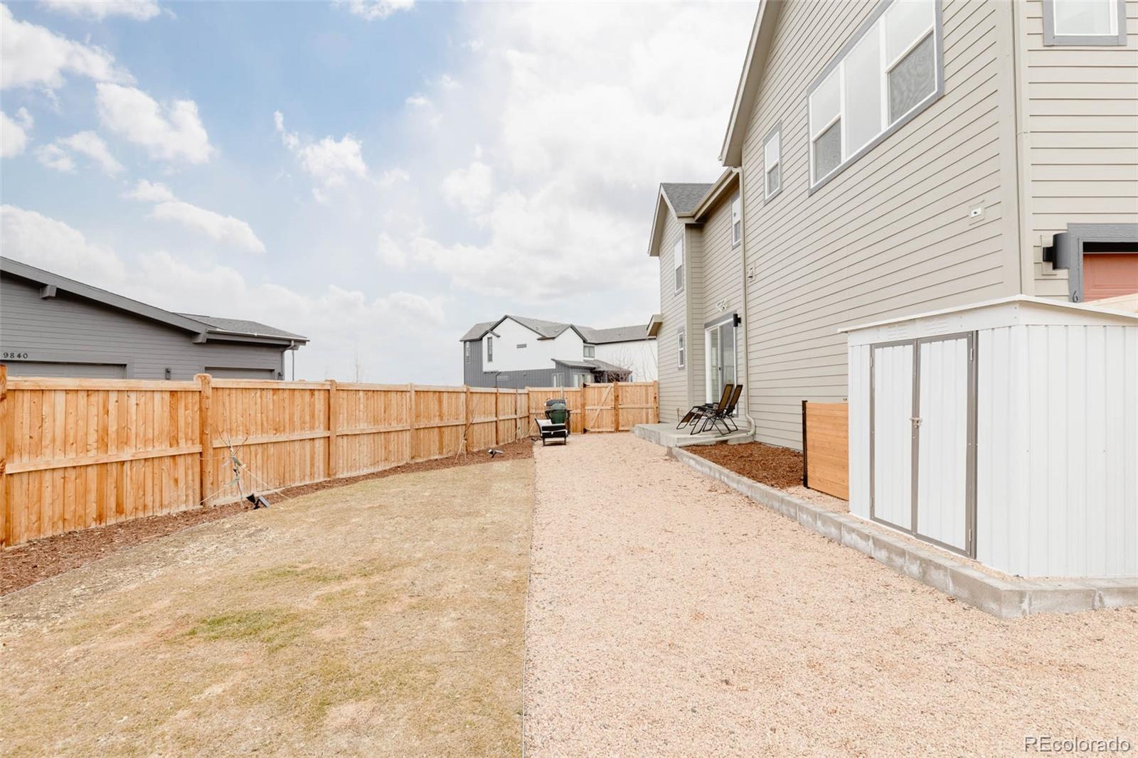 Newly constructed in 2022, this immaculate Central Park home features gorgeous finishes throughout and is situated on a spectacular corner lot with amazing views of the Wildlife Refuge. Step into the welcoming entryway and discover an airy, open main floor for living and dining. You'll be delighted to see the main level of the home is lined with beautiful oak floors creating a timeless look. The kitchen is as functional as it is stylish, boasting 42" upper cabinets, stainless steel appliances, soft close drawers, a pantry to keep you organized, beveled white subway tile backsplash and a large island with quartz counters. The sliding glass door off the dining room leads to the spacious, landscaped backyard. A large stamped concrete patio guides you to a mixture of low maintenance pea gravel and a spacious grassed area surrounded by flower beds and fruit trees that line the fence, creating the perfect space for entertaining. Continue upstairs to find the stunning primary suite and look out the windows for panoramic mountain views. You'll also discover a large walk-in closet and a luxurious primary bathroom finished with double vanities, white cabinetry, marble tile throughout and a glass encased shower. On this level you will also find a spacious light-filled loft, two additional bedrooms, an additional full bathroom and a convenient laundry room with built-in cabinets. The attached garage fits 2 cars and all of your gear & tools. You'll also find a rare, large private driveway for additional parking. The unfinished basement provides a ton of storage space and is ready for you to complete to suit your lifestyle best. You don't want to miss this amazing North End home near the best trails, playgrounds, pool, shopping, pickleball courts & top-rated schools in Denver!